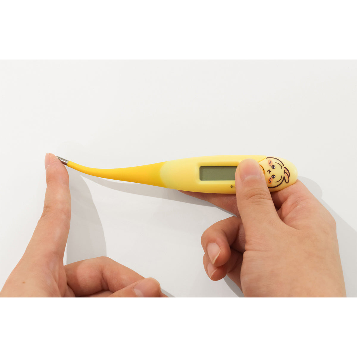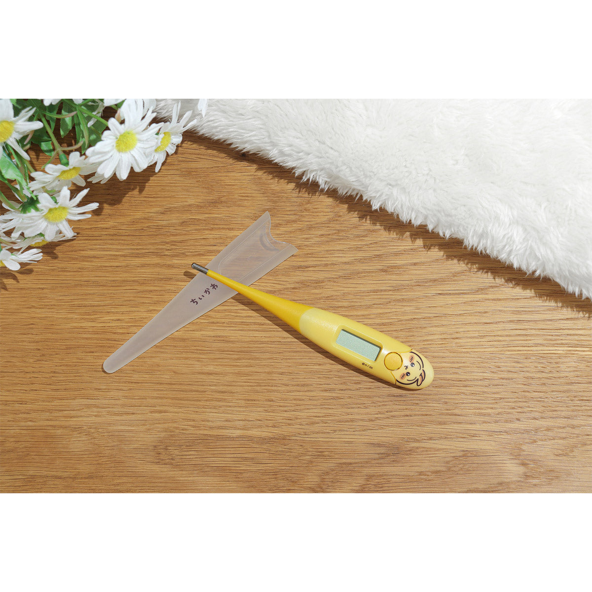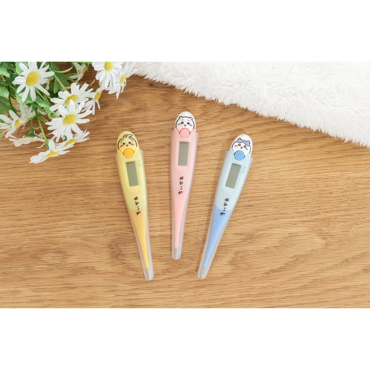 ちいかわたちの体温計が登場!先端がまがるのでやさしくわきにフィット。