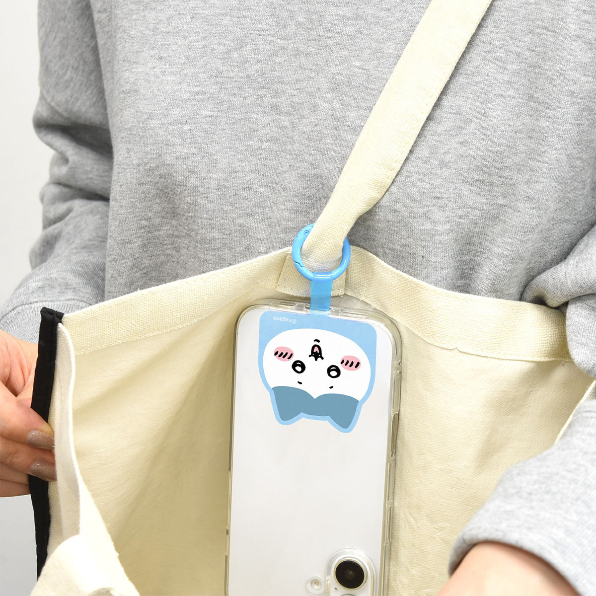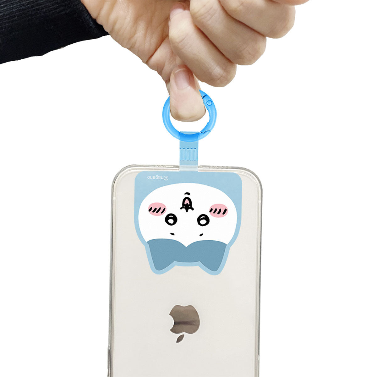 お顔が新しくなってリニューアルしました!スマートフォンケースに挟むだけでリングをもって持ち歩いたり、ストラップを取り付けたり、カバン等に取り付けたり様々な用途で使用することができます。